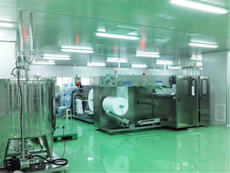 为防止交叉感染及积灰,吊顶、墙面、地面的装饰用材要求耐 磨,不起尘、易清洗、耐腐蚀。在无尘车间内要求踢脚与地面交界处需要为圆角,为避免意外事故发生,要求阳角也做成圆角(但门洞上口这些地方可例外),墙上做防撞板。外露的木质和石膏材料易吸湿变形、开裂、积灰、长菌、贮菌,所以要求在无尘车间内不得使用这些材料。为防止空气途径的污染,进入无尘车间的门需设置吊挂式自动推拉门,以减少外界气流干扰,避免地面出现凹槽积污。无尘车间门的自动延 时关闭装置安装、工作正常。无尘车间是以空气净化为手段,具有一些正压(或负压),要求气密性良好,所以无尘车间内所有拼缝需要平整严密。为了避免突出与不平而积尘,墙面上的插销、药品柜、吊顶上的灯具等均应暗装,在不同材料的接缝处要求密封。无尘车间对净化空调系统的要求较为特 殊和严格,禁止在无尘车间内使用普通的风机盘管机组或空调器,避免发霉和滋生细 菌,强调整个无尘车间内的湿度控制。新风量按规定确定,并取其朂 大值。无尘车间空调管路应短、直、顺,尽量减少管件,采用气流性能良好、涡流区小的管件和静压箱,管路系统不应使用软管。Ⅰ~Ⅲ级无尘车间内集中布置于实验台上方的送风口,应使包括实验台的一些区域处于洁净气流形成的主流区内。所有无尘车间,应采用双侧下部回风,不应采用四角或四侧回风。采用室内回风,不设余压阀向走廊回风,本室回风通过本室回风管循环解决。软接头材料应为双层,对防止其表面长霉有一些作用。回风口中设置碳纤维过滤层,以吸收室内回风中的异味,回风口的百叶片应选用竖向可调叶片,以减少横向叶片上的积尘,如采用对开多叶联动叶片,不仅可保持定风向,还可起到平衡各回风口的风量作用。与循环空气接触的金属件外表需要有保护层,避免无尘车间内所使用的药品、消 毒剂等使金属表面腐蚀。